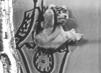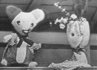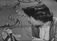Daniel Striped Tiger interrupts to show her some mittens he received from a viewer (Pam). Pam sent them to him so he can keep his hands warm while he goes shopping for hamburger. Today, Daniel and his friends are having a party with roast hamburger and marshmallows to celebrate the anniversary of Peter Minuit's purchase of Manhattan. In the Attic, Phil and Rhoda Dendron have a discussion over whether to name their new baby Nasturtium (after Phil's great-grandmother) or Chrysanthemum. In the meantime, Josie attempts to convert Gramma Phone into a television set, resulting in several rather dramatic explosions when the wrong wires are crossed multiple times. Several other inhabitants of the Attic offer their thoughts on Gramma Phone's conversion and the Dendrons' baby name, including Ino Horse, Bill Bookworm, Foo Foo Fish, Teop, Lydia Lamp, Lawrence Light, and F.E. (a toy fire engine that speaks only using the first letter of each word). Lydia seems to be planning a wedding. Finally, Hischer (who is being Thomas Alva Edison for the day) assists Josie in the successful conversion of Gramma Phone into a television set broadcasting "GP-TV." Downstairs, Josie introduces Dr. Taylor... Josie thanks Dr. Taylor for his visit before wishing several viewers a happy birthday and singing the traditional Happy Birthday song. She then sings Mairzy Doats for all the viewers and shows the new additions to her Scrap-o-graph book -- a scrapbook with pictures and mail from viewers. King Friday wanders by, still looking for a kingdom. He has just come from Cleveland where he went to see if they wanted him to be their king. Unfortunately Cleveland is a city, not a country, and therefore does not need a king. A personal advisor did offer him a suggestion however, that he teach a course, so he decides he will teach a course on how to be a king. At the request of viewers, Josie does an encore recitation of The Lady Who Swallowed a Fly. Daniel pops back out of the Cuckoo Clock to let Josie know that he is on his way to buy hamburger and it is about 1 minute to six. Josie reminds viewers of the party tomorrow and then concludes with the So Long Song. Screenshots