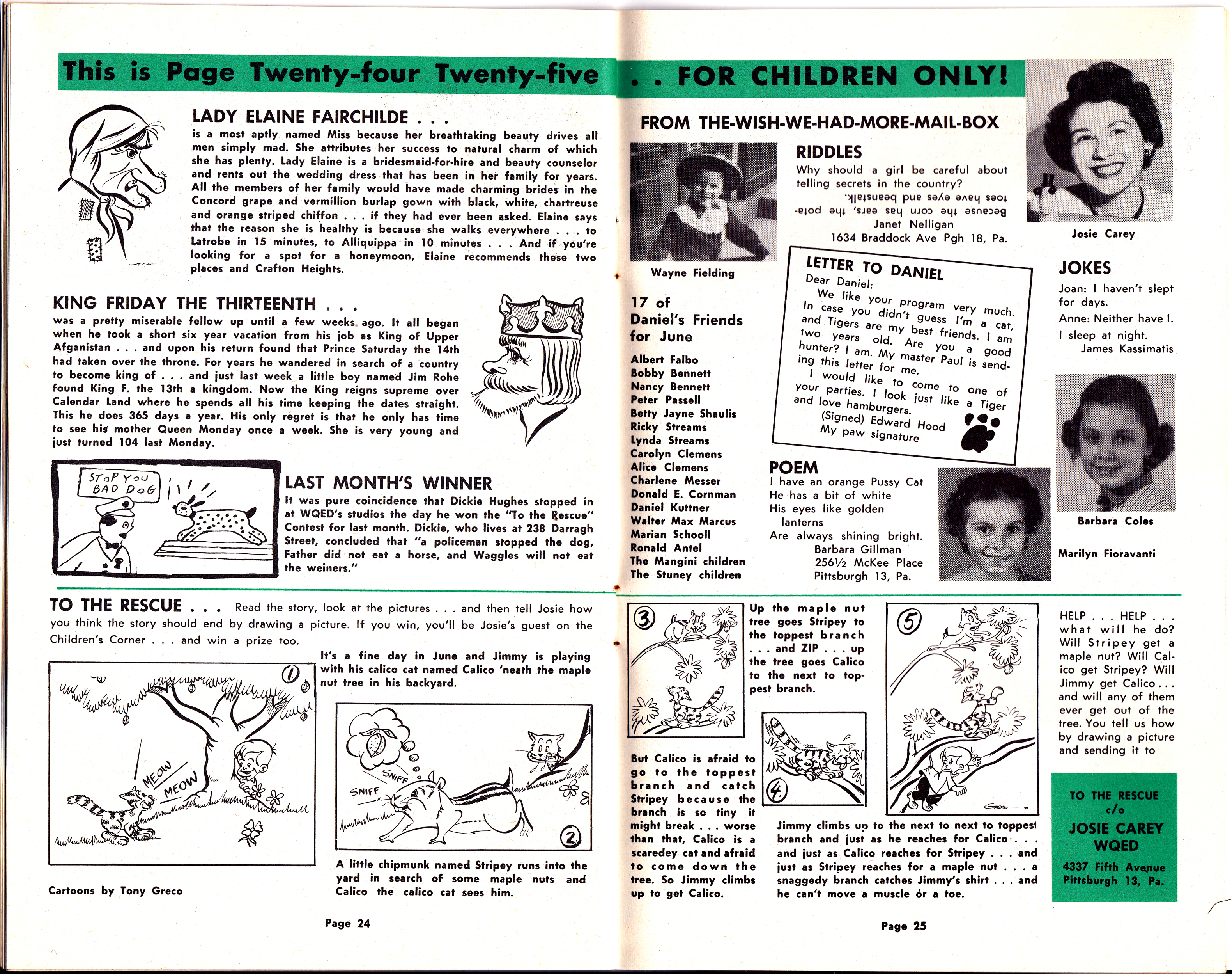 WQED Program GuidesThese images were scanned from some of the earliest program guides published by WQED in 1954. Images provided by Norbert Nathanson who served as volunteer art director for WQED at this time. Click images below for larger views.