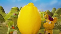 Among other troubles, Donkey struggles to squeeze juice from the extra-large lemon. Eventually, Donkey decides to follow Duck Duck's plan and is able to provide everyone in Someplace Else with some fresh lemonade. She apologizes to Duck Duck for not listening to her suggestions.