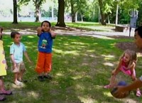 Celebrating his ability to catch the ball, Daniel hops on one foot and finds that Miss Elaina has trouble hopping. He encourages her to keep trying and with practice, she gets better.