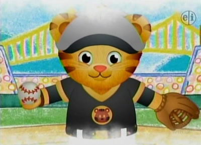 When Daniel make-believes that he is a baseball player, his uniform resembles that of the Pittsburgh Pirates. Additionally, the view behind Daniel is remarkably similar to the view seen at Pittsburgh's PNC Park.