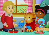 As Daniel and Miss Elaina continue playing, Daniel's leg begins to hurt from the previous accident. Lady Elaine returns and provides him with an ice pack for his injury. The friends continue playing but decide to pretend to be doctors so they can make others feel better, too.