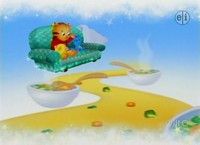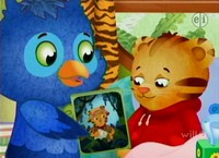 Having heard that the Tigers weren't feeling well, X the Owl stops by with a collection of books for the family to enjoy. Daniel's dad is reading him a "Tigey the Adventure Tiger" book as Mr. McFeely delivers get well cards from all of Daniel's friends at school. Lady Elaine returns to the Tiger's house, as well, with a pot of homemade soup before Miss Elaina and her dad bring Daniel a special puppet she made for him at school.