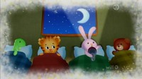 With Daniel's help, Prince Tuesday puts Margaret to bed. After a countdown to calm down, Margaret quickly finds herself ready to rest. Back in the living room, Daniel and Prince Wednesday enjoy their indoor camp-out. Daniel make-believes that he is really camping in the forrest. After playing, it's time to sleep and Prince Tuesday helps Daniel and Wednesday calm down. He gives them a variety of glow-in-the-dark star stickers to place inside the tent before sharing a bedtime song with them. They are disturbed, however, when Margaret wakes up and begins to cry. Once she is back to sleep, everyone calms down again. Strategy