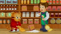 When Grandpere arrives, he and Daniel decide to make raisin bread, but they need to go to the Neighborhood market for a few ingredients. Prince Tuesday is working at the market and hurries to get the items they need. As he rushes, he drops a bag of flour on the floor. Daniel reminds him that "sometimes it's good to go slow" and helps clean up the mess. Daniel make-believes that it is snowing inside the market.