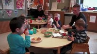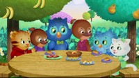 Although the medicine helps her, Jodi continues to rest. Doctor Plat encourages Daniel and Katerina to "find a way for everyone to play." Seated on the blanket, they pass the ball to one another rather than throwing and catching. O the Owl arrives and asks to join his friends. When there is nowhere for him to sit on the blanket, everyone moves a little so there is room for O. As they find shapes in the clouds, Daniel make-believes that he can fly in the clouds on a magic blanket. Everyone joins X the Owl at the picnic table where he has prepared a peach pie to share. Everyone but Daniel is excited to taste the pie but he remembers that he is allergic to peaches. Doctor Plat shares some strawberries with Daniel so he can be included in snack time. Strategy