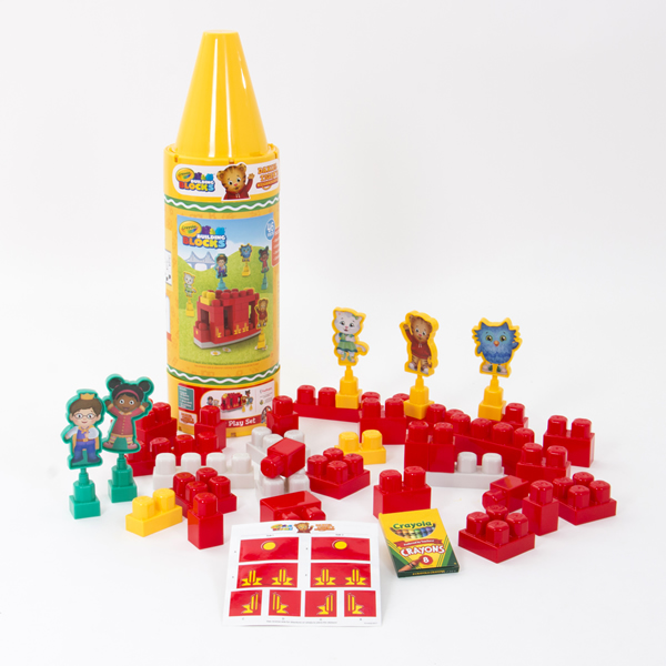 DescriptionJump aboard! Daniel and his friends want to take a ride with you! This play set lets you build a Trolley with Daniel Tiger and 4 of his friends. Daniel Tiger's Trolley Play Set features 5 block fit figures, 8 crayons, 1 decal sheet, and 32 building blocks.