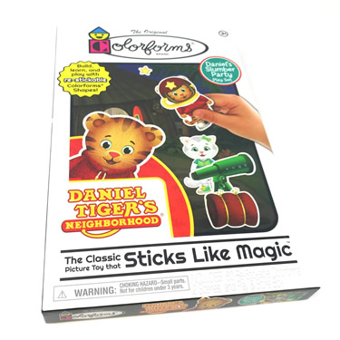 Colorforms: Daniel's Slumber Party SetDate: 2019 © 2019 The Fred Rogers Company DescriptionEnjoy classic Colorforms play with your favorite characters from Daniel Tiger’s Neighborhood! Mix and match the re-stickable pieces to have your very own slumber party with Daniel, Miss Katerina and friends! Stick and re-stick the pieces on each colorful scene to imagine your own stories over and over again. Set includes 60 re-stickable Colorforms pieces, 2 colorful play scenes, idea guide, and sturdy storage box. [Amazon] |