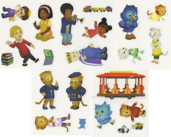 © 2017 The Fred Rogers Company DescriptionThe Finger Puppet Kit includes two puppets -- Daniel Tiger and O the Owl -- measuring approximately 2.25" tall. Also included are two backgrounds and five sheets of static stickers which can be applied to the backgrounds.