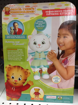 © 2013 The Fred Rogers Company DescriptionBy pressing her left hand, Katerina will say any one of twelve phrases. Operates on 2 AAA batteries. |