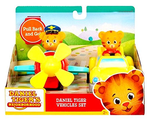 DescriptionDaniel Tiger loves to imagine driving his Tigertastic Car and Airplane! Now you can imagine great adventures too with this 2pk Daniel Tiger Vehicle Set! Each vehicle has a fun pull-back feature for extra speed. Chunky size is perfect for little hands. Figures are non-removable. -- Amazon.com |