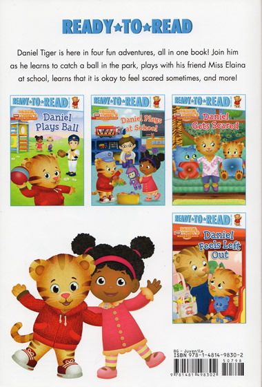 SummaryDaniel Tiger is here in four fun adventures, all in one book! Join him as he learns to catch a ball in the park, plays with his friend Miss Elaina at school, learns that it is okay to feel scared sometimes, and more! NotesThis book is based on the storylines from Episode 119a, Episode 205b, Episode 118b, and Episode 136b. Titles in this book include Daniel Plays Ball, Daniel Plays at School, Daniel Gets Scared, and Daniel Feels Left Out. |