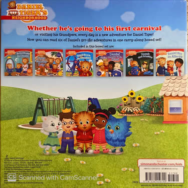 © 2019 The Fred Rogers Company SummaryWhether he's going to his first carnival or visiting his Grandpere, every day is a new adventure for Daniel Tiger! Now you can read six of Daniel's grr-ific adventures in one carry-along boxed set! NotesThe following books are included in this box set: |