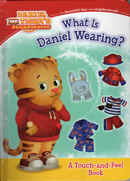 Poses and layouts by Jason Fruchter SummaryWhether it's bedtime or playtime, a sunny day or a rainy day, Daniel Tiger loves getting dressed! This book has textures to touch and feel on every spread so you can help Daniel get dressed for the day. NotesThis book includes textured spots on each page to touch including Daniel's sweater, overalls, rain cap, sunglasses, pajamas, and fur. Appearing In This Book |