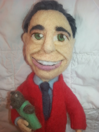 DescriptionThis is a needle felted doll, made with nothing except dyed sheep's wool. The doll stands approximately 13 inches tall. Made by Shauna Shepherd in 2016. |