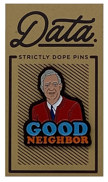 Good Neighbor Enamel Pin (Data)Date: 2019 DescriptionCollaborative effort between Data and Kill the Giant. Soft eamel pin measures approximately 1.45" and features the images of Tom Hanks as Mister Rogers. A sticker of this image was also made available by through the Data site. |