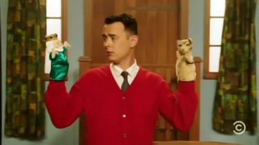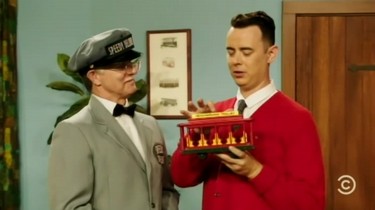 Drunk HistoryOn February 27, 2018 -- just a few days after the 50th anniversary of the national run of Mister Rogers' Neighborhood -- an episode of Comedy Central's Drunk History about underdogs featured a segment about the history of the Neighborhood. Playing the part of Fred Rogers was Colin Hanks, the son of Tom Hanks who had recently been announced as the lead role in an upcoming Fred Rogers biopic.