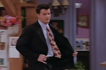 Later in the same season, on the eleventh episode -- "The One With the Lesbian Wedding" (1996) -- Ross refuses to attend the wedding of his ex-wife. Always sarcastic, Chandler responds with his own version of Mister Rogers' opening song.