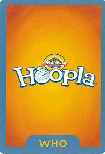 HooplaIn Hoopla, a variation of the popular game Cranium, players "team up to perform actions prompted by drawn cards within a time limit." One of the "WHO" cards features Mister Rogers.