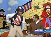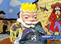 WGN NewsOn September 19, 2008, the WGN Morning News crew celebrated International Talk Like a Pirate Day with a parody of Mister Rogers' Neighborhood. Jolly Rogers' Neighborhood featured Jeff Hoover and Mike Toomey playing the parts of Jolly Roger and Long John McFeely. Using a King Friday puppet, it is suggested that the fish had been fed by having Chef Brockett walk the plank. Long John McFeely arrives to deliver a collection of pirate jokes.