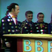The Royal Button BandThe Royal Button Band is a musical performance group organized by Handyman Negri in the Neighborhood of Make-Believe. The group includes a variety of instruments from piano to flute. Wearing jackets covered with buttons and with the image of a "B" on the back (made of buttons, of course), the Royal Button Band performs along with Vija Vitra for King Friday XIII, Queen Sara Saturday, and others in the Neighborhood.[1] PerformersThe Royal Button Band consists of Johnny Costa (piano), John Vincent (drums), Carl McVicker (bass), Tom Lee (flute), and Handyman Negri (guitar). ImagesAppearancesMister Rogers' Neighborhood References
