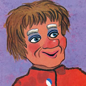Lady Elaine is the Neighborhood mischief maker and, having learned from the Wizard of Lupovich,[2] often uses her Boomerang-Toomerang-Soomerang to do things such as rearrange the Neighborhood or to turn it upside down.[3] She is credited with the discovery of Planet Purple which she found while flying in her spaceship. Lady Elaine also owns a helicopter named Yo-Yo[4] and once opened a pie restaurant in the Neighborhood of Make-Believe.[5]