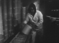 Mister Rogers arrives with two tubs of ice cream which he places in the freezer as he sings One and One are Two. Picture Picture shows a film about how people make ice cream in a factory.