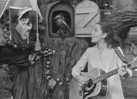After singing the traditional version of This Land is Your Land, Lady Aberlin adds a Neighborhood verse.