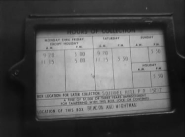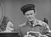 Mr. McFeely stops by and graciously agrees to mail the letter for Mister Rogers since the mailman has already passed by. Back inside, Picture Picture shows a film about what happens to a letter after it is dropped in a mailbox. In the Neighborhood of Make-Believe, Reardon is delivering mail through the Neighborhood when he stops by the clock to talk with Daniel. He shares a letter from King Friday and Edgar Cooke who are enjoying their visit with Sara Saturday. Reardon agrees to stay in the Neighborhood for a few days to help out while King Friday and Edgar are away. At the tree, Reardon has a letter for X the Owl who shares that he has been asked by Lady Elaine Fairchilde to help set up camp sites at the castle. It turns out that the letter is from Lady Elaine herself and communicates the same request. Moving on, Reardon finds Lady Elaine setting up tents in the castle garden. She thinks a royal castle camp site would be of great interest to others as it would be the only one of its kind in the world. Reardon is not so sure that King Friday would agree -- let alone approve. Before leaving, Reardon delivers a box to Lady Elaine which turns out to be a Lady Elaine Fairchilde-in-the-box -- a jack-in-the-box type toy with a Lady Elaine puppet inside. Back at the house, Mister Rogers talks about Lady Elaine and how sometimes people just like to play. He concludes by singing The Clown in Me and demonstrates a jack-in-the-box. NotesThe address written on the outside of the Lady Elaine in-the-box is 15213 -- the zip code for Pittsburgh, PA. The information seen on the mailbox where Mr. McFeely drops off the letter reveals it's location -- the corner of Beacon and Wightman in Pittsburgh's Squirrel Hill Neighborhood.