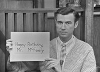 Chef Brockett arrives with a birthday cake which he and Mister Rogers decorate with gumdrops. In the Neighborhood of Make-Believe, Handyman Negri shares a Speedy Delivery pennant with Lady Aberlin. This gift was made for Mr. McFeely by Sara Saturday with the materials being purchased by King Friday. Lady Aberlin and Handyman Negri are asked to deliver the gift to Mr. McFeely as representatives of the kingdom. Back at the house, Mister Rogers and Chef Brockett are making final arrangements for the party as Mr. McFeely arrives. Presenting him with the cake, Mister Rogers and Chef Brockett sing Today is a Special Day before the other guests begin to arrive. Lady Aberlin delivers the glass made by Daniel Striped Tiger and gives Mr. McFeely a gift of her own -- a kiss on the cheek. Handyman Negri arrives with the chair for Mr. McFeely's bicycle, the pennant from King Friday and Sara Saturday, and his own gift of song -- Today is a Special Day played on his guitar. Last but not least, Miss Emilie arrives with a birthday poem for Mr. McFeely. After the party guests and a grateful Mr. McFeely depart, Mister Rogers sings I'm Taking Care of You. NotesAlthough this episode celebrating Mr. McFeely's birthday originally aired on July 19th, David Newell's actual birthday is November 24th. Miss Emilie's poem for Mr. McFeely: