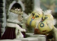 In the Neighborhood of Make-Believe, Lady Aberlin has a model duck she is taking to the Museum-Go-Round and she stops to show it to X the Owl on her way. Together with X, she sings I'm Glad I'm the Way I Am. As Lady Aberlin departs, Robert Troll arrives at the tree where he shares a pair of puppets he has made. He explains that the two duckling puppets are sisters that are able to answer questions yes/no questions. After making an appointment, Robert Troll visits the castle where he tells King Friday that Sara Saturday will be soon be visiting the Neighborhood. In preparation, King Friday tries on a new robe before he and Robert Troll retire to the castle's T Room for further "troll talk." Back at the house, Mr. McFeely has already been by to pick up the ducklings. Mister Rogers makes his own version of Robert Troll's ducklings by writing "yes" and "no" on two plastic ducks. He explains that people are able to make their own decisions and sings I'm Glad I'm the Way I Am. NotesThe purple robe put on by King Friday in this episode is one that became his regular attire in future episodes. Appearing In This Episode