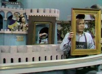 In the Neighborhood of Make-Believe, Handyman Negri invites several neighbors to the castle where they are to receive a present from King Friday and Queen Sara. Upon uncovering the gift, Handyman Negri finds a moving frame which can be taken for a ride. The first to take a ride, Lady Elaine Fairchilde wants to keep the frame for herself but Handyman Negri explains that the frame is to be shared. After X the Owl and Henrietta Pussycat take a turn with the frame, Handyman Negri is provided with a larger frame for himself. His frame, however, does not move on its own. Lady Elaine proposes the idea of having a carnival in the Neighborhood of Make-Believe to show their appreciation to the King and Queen. Back at the house, Mister Rogers shares some childhood films of himself. NotesAs Mister Rogers walks to the kitchen to play the matching game, Let's Be Together plays in the background. Appearing In This Episode
