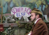 Outside on the porch, Mister Rogers mixes some cement in a large tub as he sings You've Got To Do It. With the cement properly prepared, it is used to complete a step up to the front porch of the house. In the Neighborhood of Make-Believe, Dr. Marchl has a rubber ball belonging to Robert Troll which X the Owl initially thinks is an orange. Queen Sara has asked Dr. Marchl to talk with Robert Troll about his feelings. Henrietta tells Dr. Marchl where he can find Robert Troll by singing To Go To Someplace Else. At Someplace Else, Robert Troll shares with Dr. Marchl and Donkey Hodie that he would like to live at Lady Elaine Fairchilde's campsite but is nervous about asking. With the encouragement and support of Dr. Marchl and Donkey Hodie, Robert Troll approaches Lady Elaine at the Museum-Go-Round. Clearly overwhelmed and busy, Lady Elaine is glad to let Robert Troll stay at the campsite. In return, Robert Troll offers to help Lady Elaine at the Museum-Go-Round as well as at the campsite. Back at the house, Mister Rogers talks about the importance of sharing feelings and asking questions before he checks on the front step. NotesAs Mister Rogers goes to the porch, You Have To Learn Your Trade can be heard playing in the background. The concrete truck featured in the film was from the 43rd Street Concrete Company in Pittsburgh. Appearing In This Episode