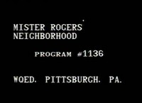 Episode CreditsProduced by WQED Pittsburgh, Pennsylvania in association with Small World Enterpriese, Inc. for N.E.T. Created and Written by Fred Rogers Production funds for this television visit were provided by a grant from the Sears Roebuck Foundation and The Corporation for Public Broadcasting © 1970 National Educational Television and Radio Center |