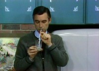 In the Neighborhood of Make-Believe, King Friday would like to have a waterfall at the castle so he orders Handyman Negri to continuously pour water between two pitchers. When Donkey Hodie suggests installing a real waterfall that could be connected to the windmill at Someplace Else, King Friday provides two days for the project to be complete. At Handyman Negri's request, Corney orders the pipes needed for the royal waterfall. Back at the house, Mister Rogers compares water flowing through pipes to milk going through a drinking straw. In the back yard, he shows a garden hose before thinking about children playing outside in a sprinkler. As he cleans up the kitchen, Mister Rogers spills some of the colored water on the floor and on his feet. After cleaning up the spill, he changes his socks as he concludes for the day. NotesPicture Picture greets Mister Rogers with Claude Monet's Impression Sunrise. The distance between King Friday's castle and the windmill at Someplace Else is 394 7/8 feet. It's Such a Good Feeling plays in the background during the film of children playing in the water. Appearing In This EpisodeSongsImages