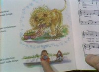 After retrieving a book from inside, Mister Rogers shows a picture of a girl wishing she was an angry lion and sings Wishes Don't Make Things Come True. Back for a visit in the Neighborhood, Francois Clemmons stops by and sings a new opera song he has learned. In the Neighborhood of Make-Believe, Handyman Negri is putting the final touches on the royal waterfall. Officer Clemmons arrives at the castle where he is to serve as the waterfall singer. Communicating by walkie-talkie, Handyman Negri asks Donkey Hodie to start the windmill at Someplace Else which makes the waterfall work. Officer Clemmons sings as the water begins to flow. Back at the house, Mister Rogers uses a dip tube to clean the aquarium. He concludes by singing I'm Proud of You. NotesThe lion cubs are named Romeo and Juliet. The book with the picture of a girl wishing she was an angry lion is the 1970 Mister Rogers' Songbook. King Friday uses the "walking talking" to thank Donkey Hodie for his assistance. Appearing In This Episode