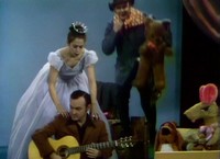 Betty Aberlin hiccups and laughs as she gives the toy to Mister Rogers. As the episode transitions back to the house, It's Such a Good Feeling plays in the background. Appearing In This EpisodeSongsImages