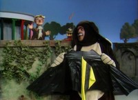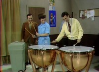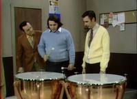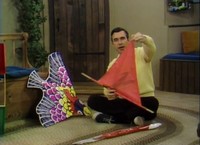 At Negri's Music Shop, Mister Rogers is introduced to Richard Kvistad -- a percussionist who demonstrates a kettle drum. When Audrey Roth arrives to clean the shop, she joins in by using her garbage can as a drum of her own. In the Neighborhood of Make-Believe, Lady Elaine Fairchilde and Bob Dog wonder if grown-ups ever get scared. They meet at the castle where they use a kite that resembles a witch to frighten King Friday. Upset with Bob Dog and Lady Elaine, King Friday explains that grown-ups have feelings, too. Back at the house, Mister Rogers sings a variation of Sometimes People Are Good. NotesAs the episode transitions to and from Negri's Music Shop, I Like to Take My Time plays in the background. Before Make-Believe, Mister Rogers compares the Trolley whistle to a crow-call he purchased at Negri's Music Shop. The crow call was used again later in Episode 1192. Following Make-Believe, Mister Rogers sings a "sometimes people get scared..." version of Sometimes People Are Good. Richard Kvistad is the Principal Percussionist and Associate Timpanist of the San Francisco Opera Orchestra. He formerly held the same position with the Pittsburgh Symphony Orchestra, where he performed as soloist.[1] Appearing In This EpisodeGuests