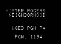 Episode CreditsProduced by WQED Pittsburgh, Pennsylvania in association with Small World Enterpriese, Inc. for N.E.T. Created by Fred Rogers Production funds for this television visit were provided by a grant from the Sears-Roebuck Foundation and the Corporation for Public Broadcasting © 1971 National Educational Television and Radio Center |