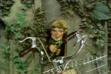 Mister Rogers has brought with a collection of toy vehicles. He looks at each one individually talking about their names and purposes. Picture Picture shares images of various men and women who drive vehicles as viewers are encouraged to guess what kind of vehicles they operate. Mister Rogers sings Just For Once. In the Neighborhood of Make-Believe, Lady Elaine Fairchilde is lonely and looking for company but everyone in the Neighborhood is busy. As Mr. McFeely passes by, she tries to convince him to stay by telling him about her new display of delivery devices (which, of course, does not exist) but he, too, is busy. Mr. McFeely leaves his bicycle at the Museum-Go-Round as he makes a delivery to Daniel's clock. Handyman Negri happens buy just in time to interrupt Lady Elaine mischievously trying to find something to do to the bicycle that would make Mr. McFeely stay. Handyman Negri helps Lady Elaine chain the bicycle to the Museum-Go-Round when she explains that she was given instructions to keep it safe. When Mr. McFeely returns from delivering a toy truck to Daniel, Lady Elaine refuses to unchain the bicycle. Handyman Negri realizes that Lady Elaine is lonely and offers to spend some time with her. Together they sing A Handy Lady and a Handy Man. Back at the house, Mister Rogers talks about lonely feelings and thinks about a film showing a chain moving into various shapes. He concludes by lining up a few of the toy vehicles and taking one away. Viewers are challenged to guess which one was removed. NotesAs she hears Mr. McFeely approaching, Lady Elaine mistakenly looks towards Daniel's clock but Mr. McFeely arrives from the opposite direction. While this is clearly a puppeteering error on the part of Fred Rogers, he recovers nicely as Lady Elaine: "There you are. I thought you were coming from around that way. Oh, Mr. McFeely, your voice is deceiving."
