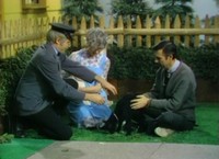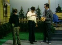 Episode 1202 Air Date: February 29, 1972 In the Neighborhood of Make-Believe, Robert Troll gathers some friends to play ball but does not have a ball with him. At the Museum-Go-Round, Lady Elaine Fairchilde makes a ball from old rags but when it comes to Robert Troll, he does not want to let go for fear that it will not be thrown back to him. After some convincing, Robert Troll trusts his neighbors and shares the ball. Back at the house, Mister Rogers talks about how it can be hard to let go of some things and then sings Please Don't Think It's Funny. After sharing a film of computerized shapes, Mister Rogers goes outside where Mr. and Mrs. McFeely have brought over two small goats named Cindy and Mindy. NotesOpening the episode, Mister Rogers snags his sweater with the zipper. Troll Talk plays in the background as Robert Troll walks throughout the Neighborhood of Make-Believe. Lady Aberlin asks Corney if his finger is still hurt referring to the events of Episode 1183. Appearing In This Episode