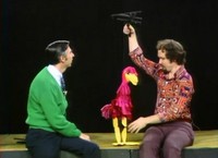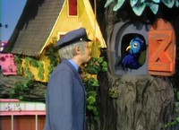 When Mr. McFeely goes to the tree to ask X the Owl if he'd like to help Corney, there is a noticeable delay before X opens his door. This is likely to allow time for Fred Rogers to move from the factory to the tree -- changing from the Conflake S. Pecially puppet to X the Owl.