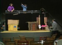 At the Brown's theatre, Mister Rogers sees the marionette puppets used in the performance and a demonstration of how the houses on the set are "blown down" by the wolf. Returning to his house, Mister Rogers stops for a moment to talk with Audrey Roth who is on her way to supervise a job for Audrey Cleans Everything. He show her a stick "marionette" from the Browns'. In the Neighborhood of Make-Believe, Miss Paulificate is teaching Purple Panda to fetch a stick. King Friday XIII asks for Miss Paulificate's assistance in contacting an airplane company so he can purchase his own plane. Back at the house, Mister Rogers uses a stick and paper to make a pretend airplane and blocks to build a hangar. He concludes by singing Pretending and watching an animation that features himself in an airplane. NotesMister Rogers continues singing Everybody Has a History as he walks to the Brown's theatre. Miss Paulificate address Purple Panda as "Pan." The animation is also seen in Episode 1222. Appearing In This EpisodeSongs