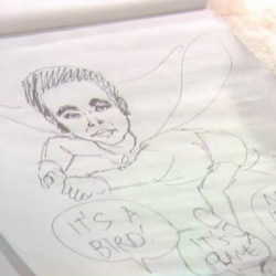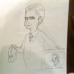 Episode 1321 Air Date: May 14, 1973 At Francois Clemmons' studio, Mr. Turner is visiting and drawing a caricature of Mr. Clemmons. He also shows caricatures of Mr. and Mrs. McFeely, Chef Brockett, Robert Troll, Elsie Neal, Audrey Roth, Handyman Negri, and Mister Rogers. Mr. Turner talks about how he comes up with ideas for his drawings and explains how a cartoon is created. Back at his house, Mister Rogers shows a film of Mr. Turner's animated characters from Kid Power. After Mister Rogers makes up a story of his own and draws simple pictures to go with it, Mr. McFeely stops by with the exciting news that his granddaughter is coming to visit. NotesThe "Sometimes People Are Good" poster was included with the record Mister Rogers Sings For Those Times When You Feel You Did Something Wrong. It was created by Alice and Martin Robinson. The "I Did Too" poster was included with the record Mister Rogers Sings For Those Times When A Grown-Up is Proud of You. It was created by Margaret Zimak. There is no Neighborhood of Make-Believe segment in this episode. A look at Morrie Turner's Neighborhood caricatures: