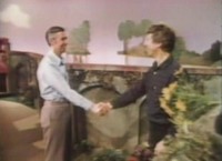 During the behind-the-scenes film, Fred Rogers and Bill Barker greet one another after Mr. Barker emerges from behind the Platypus mound. Their greeting is a very unique handshake/salute and Mister Rogers explains that he and Mr. Barker regularly greet each other that way. This handshake is also seen when Mr. Barker first visits the Neighborhood in Episode 0099.