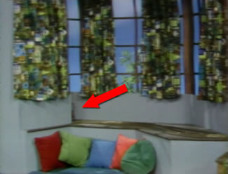 Just before Mister Rogers enters at the beginning of the episode, as the camera pans the house's interior, the Trolley can be seen barely sticking out on the track.