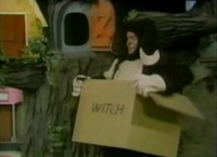 Paying a visit to Elsie Neal's shop, Mister Rogers is very impressed with the progress that Chrissy and Terri Thompson have made in preparing for their upcoming puppet show. In the Neighborhood of Make-Believe, Mr. McFeely delivers a new remote camera to Lady Elaine for her MGR-TV studio. Left with an empty box, Mr. McFeely is happy to give it to a very excited Bob Dog. Wearing the box around his waist, Bob Dog pretends to be a witch. X the Owl adds to the costume by loaning Bob Dog a witch's hat. Although X and Bob Dog are having a lot of fun, Henrietta Pussycat is frightened when she opens her door and sees a "witch." Lady Aberlin, who happens to be out using the new MGR-TV camera, tries to coerce Henrietta back out of her house but Henrietta is too scared. Lady Aberlin and Bob Dog decide it might be fun to use the costume for an MGR-TV program with Lady Aberlin as a witch. After a moment of fun, Henrietta comes out of her house only to be frightened by another "witch." At the castle, Lady Aberlin and Bob Dog film a short interview with King Friday about witches. In a matter-of-fact way, King Friday clearly states that witches are not real and anyone afraid of witches should not be. Back at the house, despite the directive of King Friday, Mister Rogers validates the feelings of Henrietta Pussycat: "What's scary to one person may not be scary at all to another person. But it doesn't help anybody for someone to say 'Don't be afraid.' Does it? no. What's much more helpful is to say 'You have your feelings.'" Mister Rogers then concludes for the day by singing It's You I Like. Appearing In This Episode