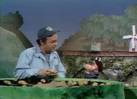 At the McFeelys' house, Mister Rogers watches as Mrs. McFeely practices her recorder. In the kitchen, Mrs. McFeely is making homemade pickles and shows Mister Rogers how it is done. Returning to the house, Mister Rogers sits at his piano and plays the same song Mrs. McFeely played on her recorder. He briefly talks about playing music by ear. In the Neighborhood of Make-Believe, Queen Sara shows concern over the whereabouts of Lady Aberlin and Daniel Striped Tiger. Handyman Negri looks at Someplace Else but they are not there. Donkey Hodie suggests checking the Land of Allmine while Harreitt Elizabeth Cow suggets they're visiting the pandas. When Handyman Negri checks with the pandas, Purple Panda uses his recorder to bring Mr. Allmine, Daniel, and Lady Aberlin back to Make-Believe the "purple way." King Friday invites everyone to the castle's D.P. room for some fresh dill pickles. Back at the house, Mister Rogers sings Some Things Belong To You (which Mr. Allmine just sang, as well) and talks about the importance of asking permission to go anywhere -- especially when it is with an adult. NotesMister Rogers mentions that he initially had four party favors but met Chrissy Thompson and her friend on the way to the house and gave one to each of them. Chrissy also informs Mister Rogers that her grandmother is "making music and making pickles" at her house today. Just after Mister Rogers takes a seat at the table with Mrs. McFeely, the shadow of a crew member can be seen passing by the front of the set. Before Mr. Allmine is brought to Make-Believe, a humorous exchange takes place between Donkey Hodie, Handyman Negri and Harriett Elizabeth Cow: