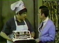 Chef Brockett stops by, and after reviewing the film of Ms. Gardner, he and Mister Rogers watch a film of an earlier Neighborhood visit. In the clip, Chef Brockett comes to Mister Rogers' house with a cake that looks like a piano. In the Neighborhood of Make-Believe, Princess Margaret H. Witch arrives to help remove the paint from the crystal ball. Using a paste made of water and flour, as well as red and blue paper, Princess Margaret is able to restore the crystal ball. Once the crystal ball working properly, eveyrone is able to see into the future once again -- this time seeing Tadpole Frog. Back at the house, Mister Rogers concludes by singing Tomorrow before closing with his usual songs. NotesThe video clip viewed by Chef Brockett comes from Episode 1062. Apparently Mister Rogers left his sand bucket on the back side of the garage. As he leaves the garage to go back towards the house, he has a green bucket under his arm. As he appears from behind the garage, the bucket is gone. After watching the video with Chef Brockett, Mister Rogers makes mention that starting the following week, all of the earlier episodes will be seen. This is in line with the fact that after this week's episodes, no new episodes were produced for three years while earlier episodes were re-broadcast. Appearing In This Episode