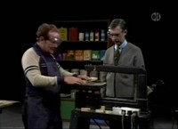 The Neighborhood of Make-Believe storyline is used (with a few changes) as the basis of the book When Monsters Seem Real. Putting on safety goggles before Bob Trow cuts new blocks, Mister Rogers is unaware that the goggle straps find themselves positioned so as to look like two thick eyebrows. Bob Trow points this out and Mister Rogers adjusts the straps. After cutting blocks from a larger piece of wood, Bob Trow carelessly leaves the saw running as he walks away. With safety in mind, Mister Rogers asks "How do you turn this off?" Segments from this week's episodes are featured on the VHS release Dinosarus and Monsters. This episode is included on the DVD Kindness Collection. Appearing In This Episode